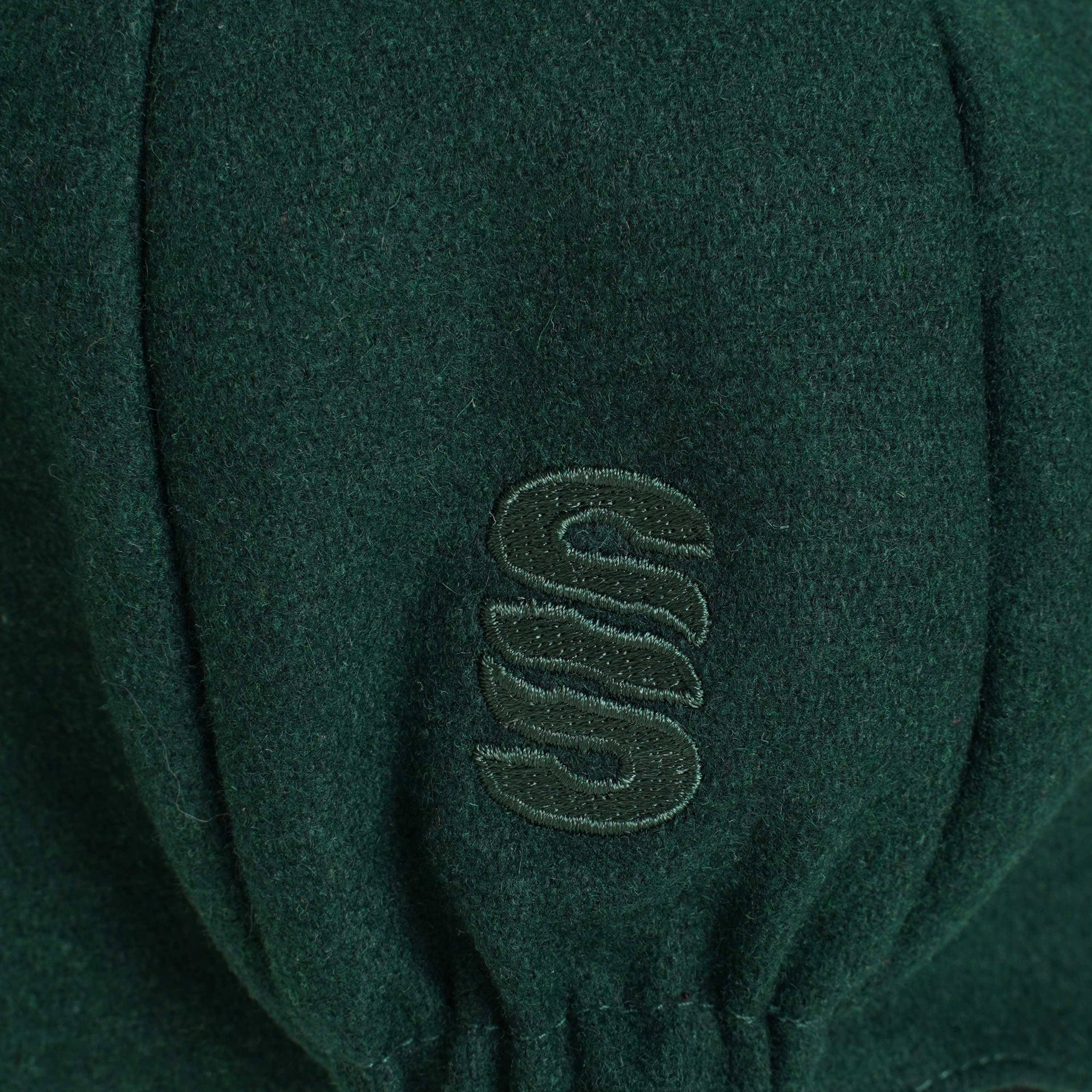 Melton wool baggy cap with elasticated back for extra comfortable and snug fit. Extra wide front panel to allow for embroidery.