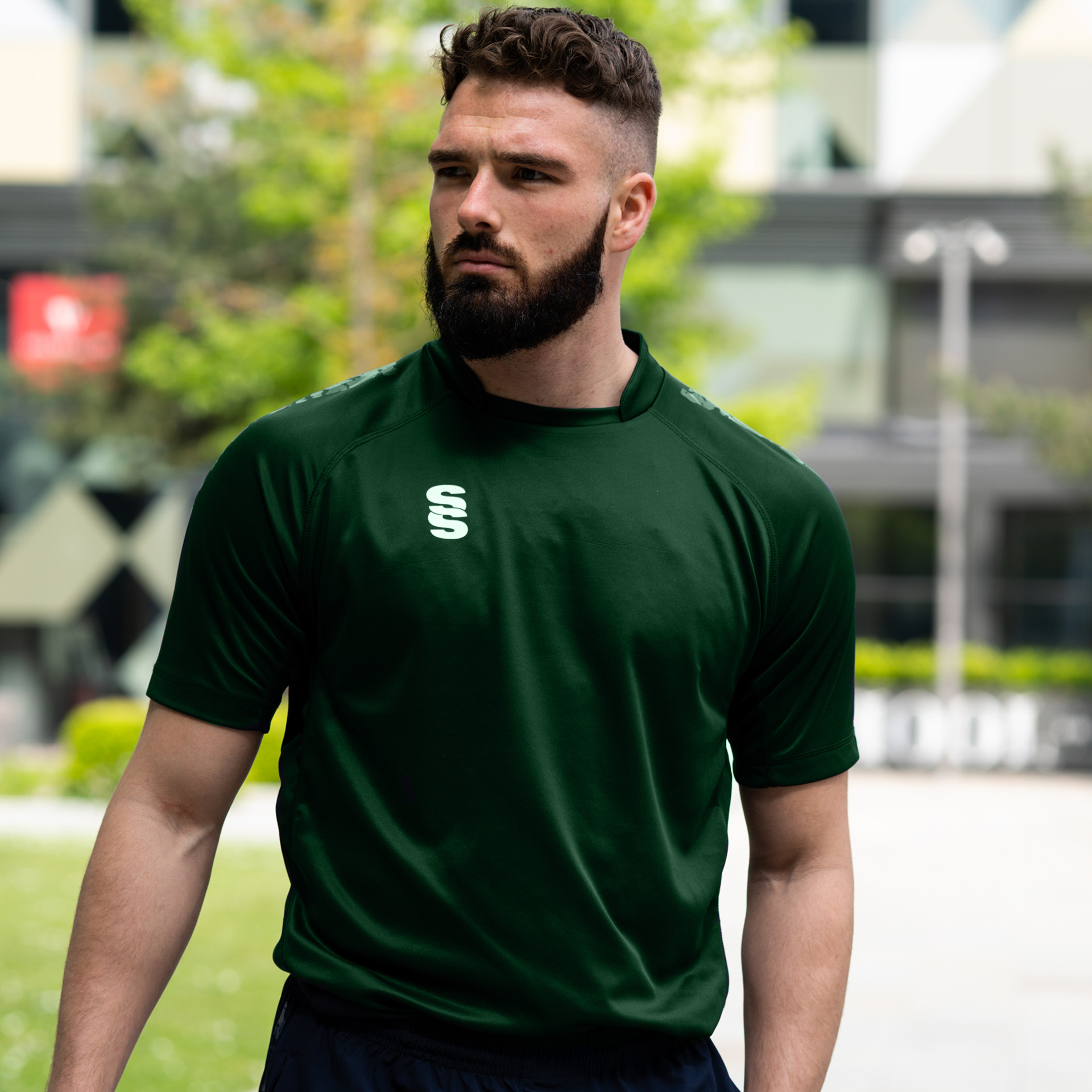 The Dual Games Shirt is made for performance with excellent polyester pique fabric. It's built with contoured underarm side panels in a breathable reverse pique fabric, a forward side seam detail and flat-lock stitching for ultimate smoothness and comfort. It features a stand collar and raglan seam sleeves, with available contrast colour graphic prints available on the shoulders. A choice of our Surridge SS logo and dual print colours to suit your branding. Our Surridge SS logo is situated on the right chest.